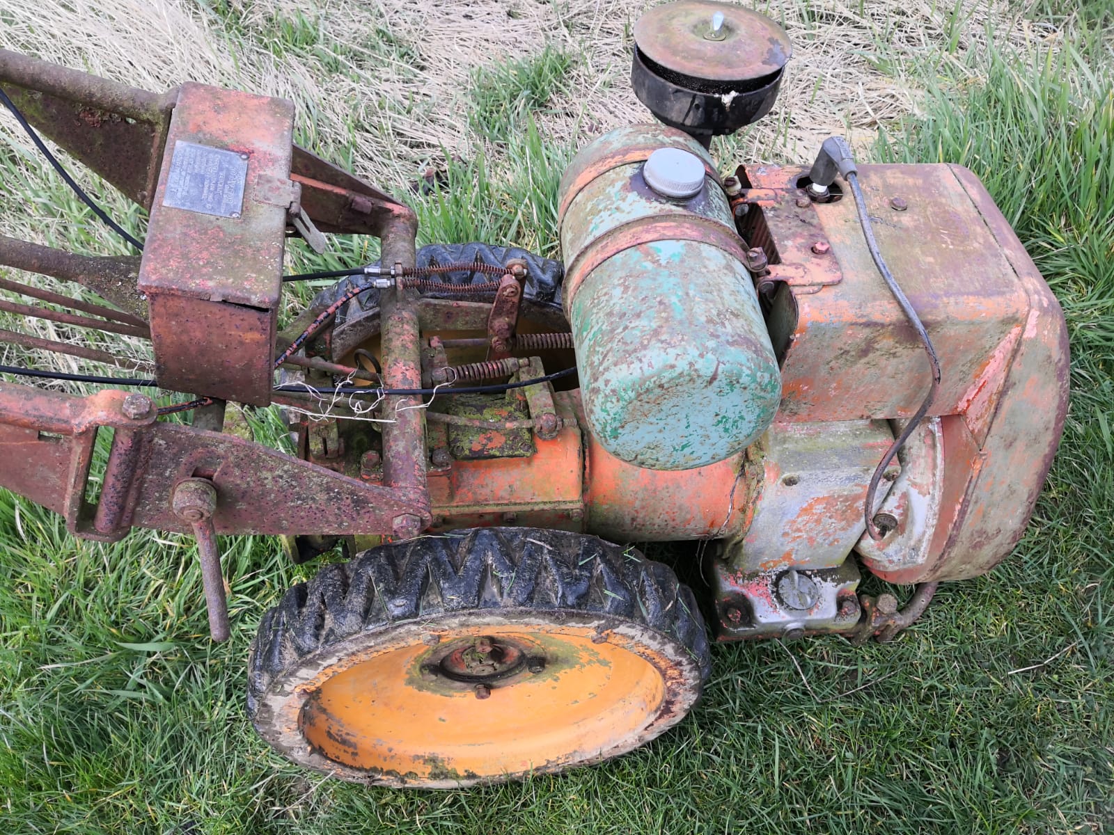 I do have the rotovator box but it was detached and I half killed myself getting it from one allotment plot to another 50 yards away, so I wasn’t about to move that home which is 1/2 a mile further. So I rolled the tractor unit back home to see if there was any life in it.