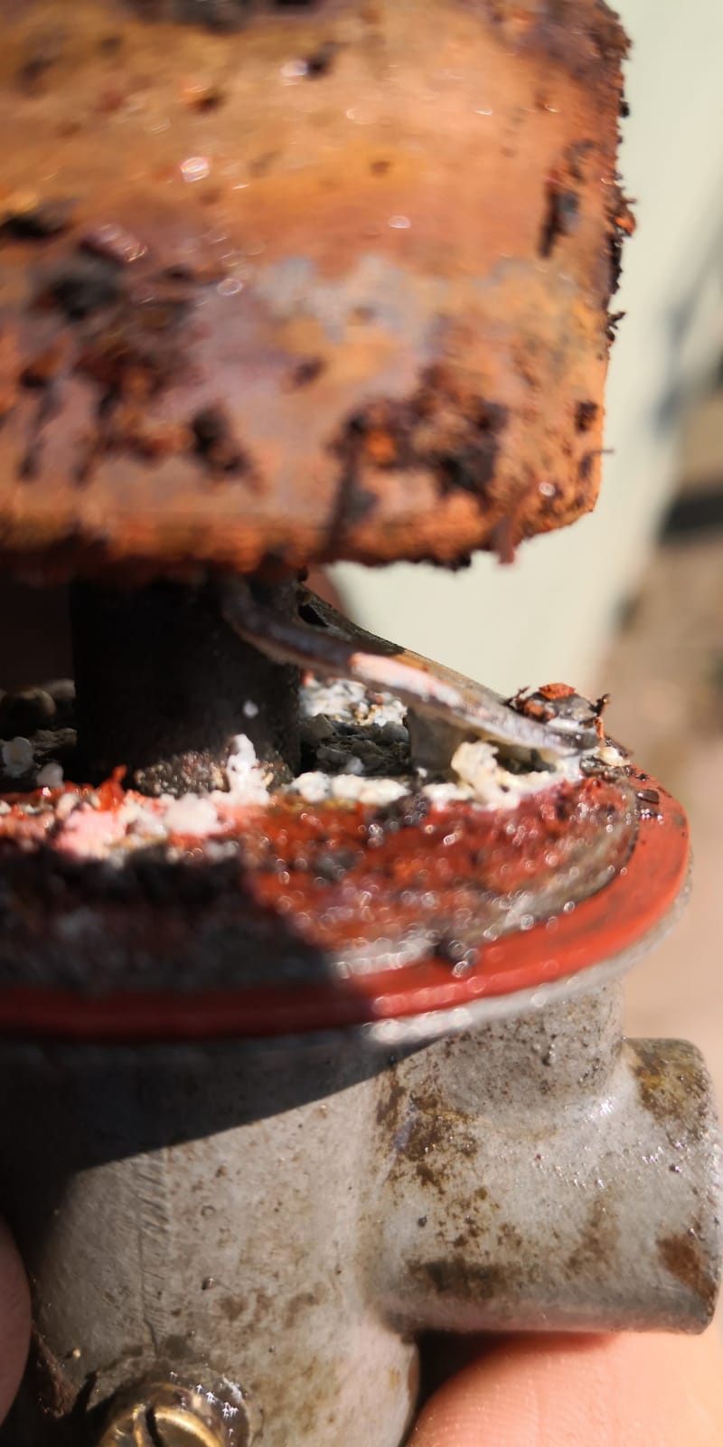 No fuel no spark so it wasn’t going to be a 5 minute fix. I thought I’d start with fuel system as it had clearly been rained on and might have had some water in. somewhere. Very rusty looking water and fuel came slooowly dribbling out of the fuel pipe when I disconnected it from the carb.