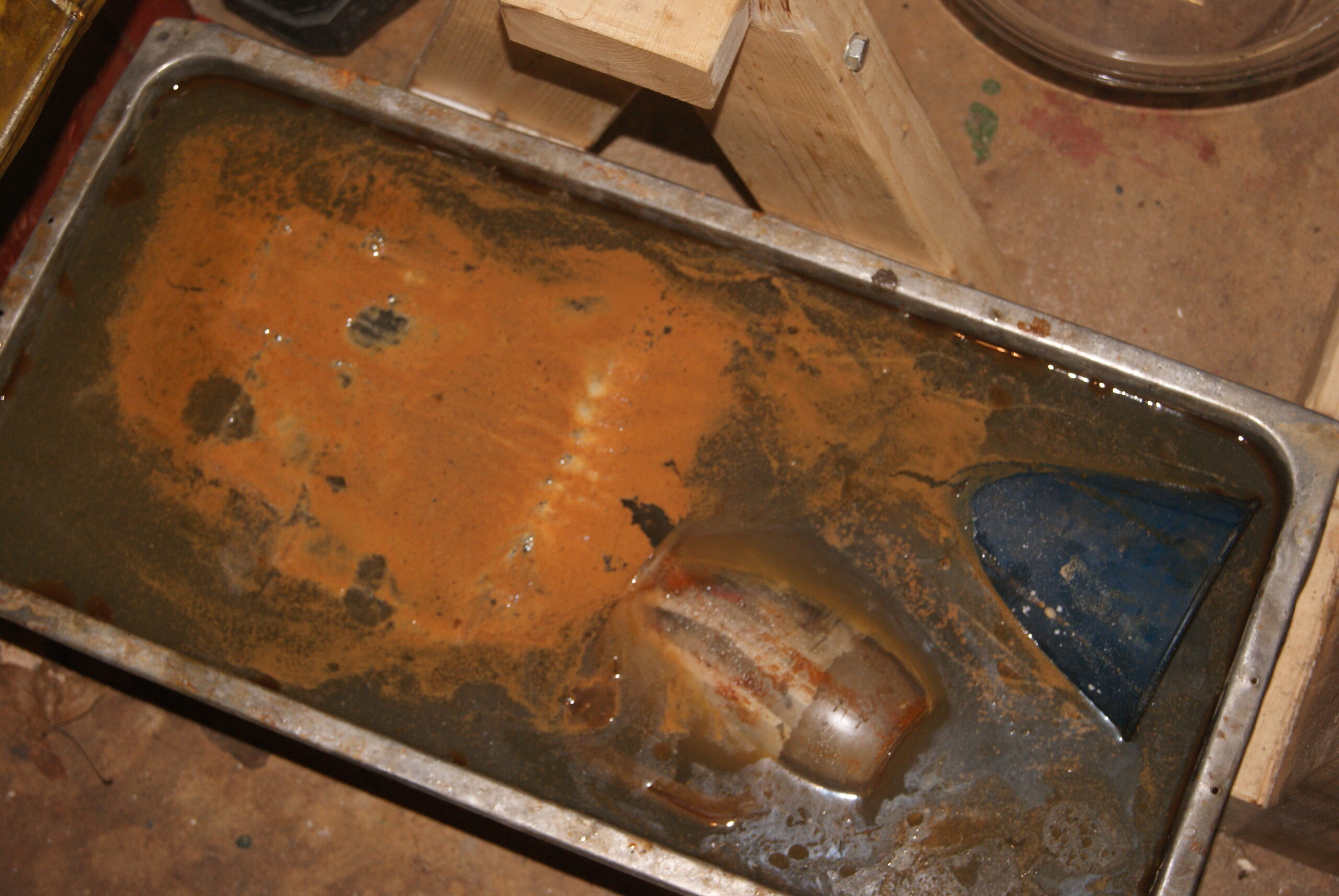 It is important to keep them covered in oil once cleaned up as the moisture in the air will start more corrosion off. All I’ve got to do now is do the same treatment to the barrel to try to free up the valves- as you can see it’s now in the neutralising solution and starting to react.