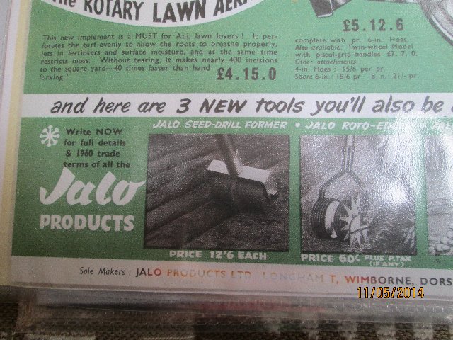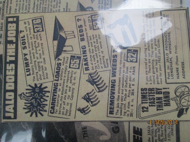 trustymasseymanParticipantAnother great find today – a full page advert in a 1947 book few acre farms by J.J. Black, this is first information I seen of the early steel jalo, priced at 63 shillings delivered to your local railway station in a wooden crate