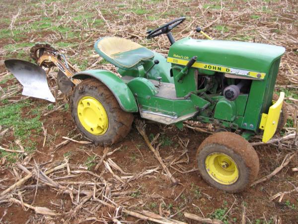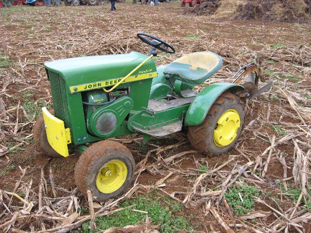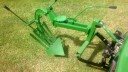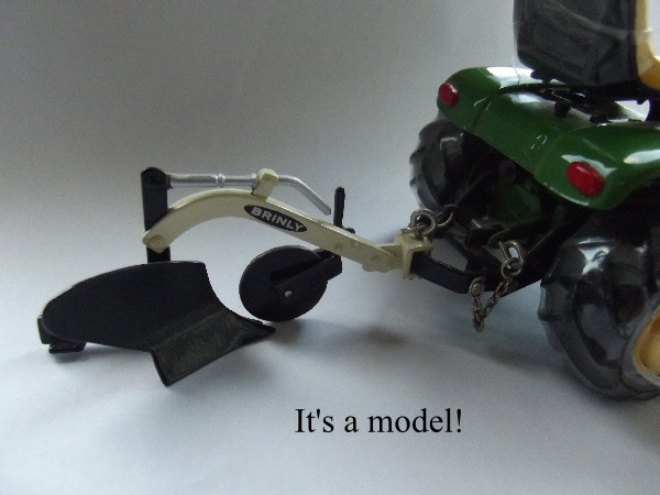 I do have the proper Brinly plough for the John Deere (also fits my Cub Cadet 100) but I’ve never used it or even had it attached to either tractor – it’s been in the loft for many many years, I’ve just taken a photo of it in the dust and cobwebs. I also have a photo of a John Deere model on my shelf with the same plough attached to show what it should vaguely be like.