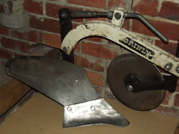 Attached is the front page of a Brinly brochure showing the plough,the plough seems to have a lot of width adjustment on the cross member and shows a rear depth wheel not shown on the other photographs in this topic -