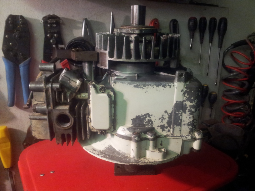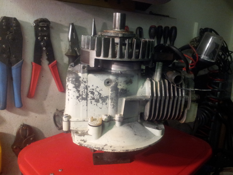 darmic1ParticipantOnce home I decided to get it running before stripping for restoration. Am pleased to say once the carb was cleaned, fresh fuel added, points and magneto cleaned, it burst into life easily. It ran well, but had no stop switch, the only missing part. Once it had ran for about half an hour, it was dismantled and sent out for a small aluminium weld repair and shot blasting. The engine was degreased ready for paint removal.