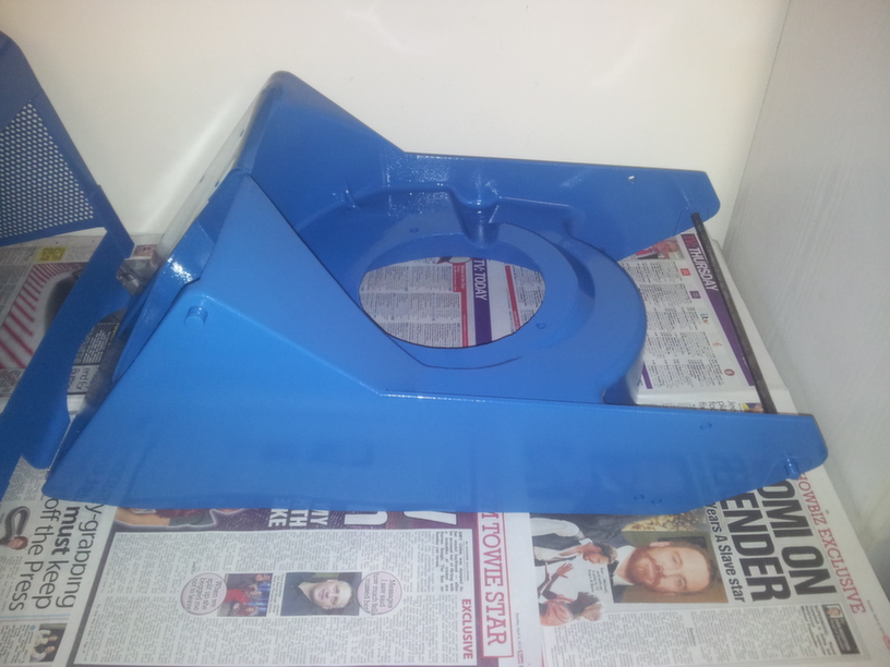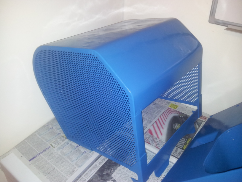 darmic1ParticipantThe Deck and Grass box were collected from the blasters having been cleaned up and etch primed. My next job was to apply some colour. The paint was matched to the original paint uncovered on the deck and on the grass box, so a good match was assured. It transpires the colour is a Ford colour used on agricultural machines of that era. I do have the name and code somewhere…..