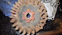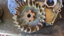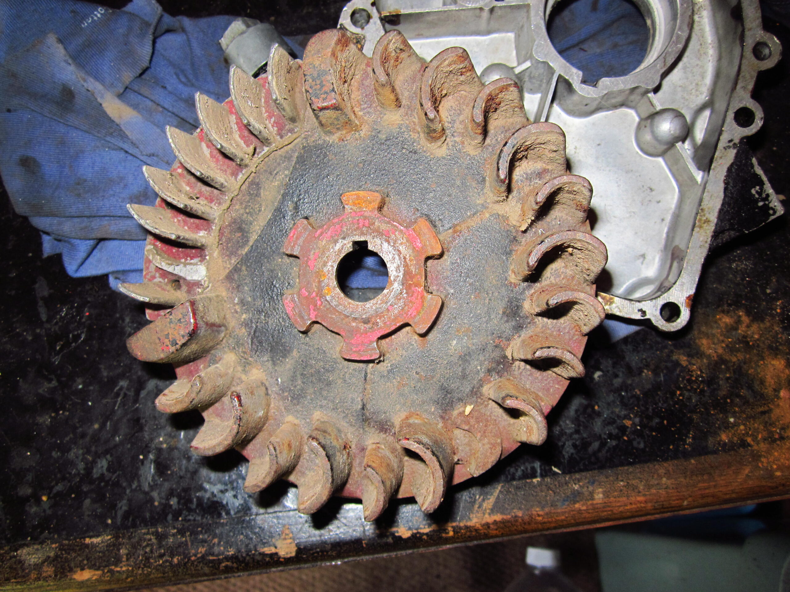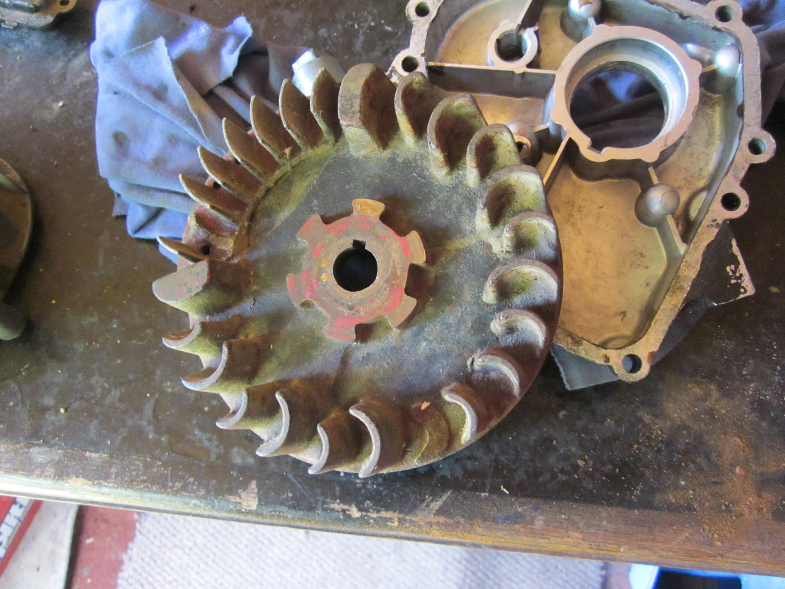 Please see the attached photos. Two vanes are missing from the flywheel (B&S 3HP) probably due to some hammer & chisel merchant trying to get the flywheel off in the past.