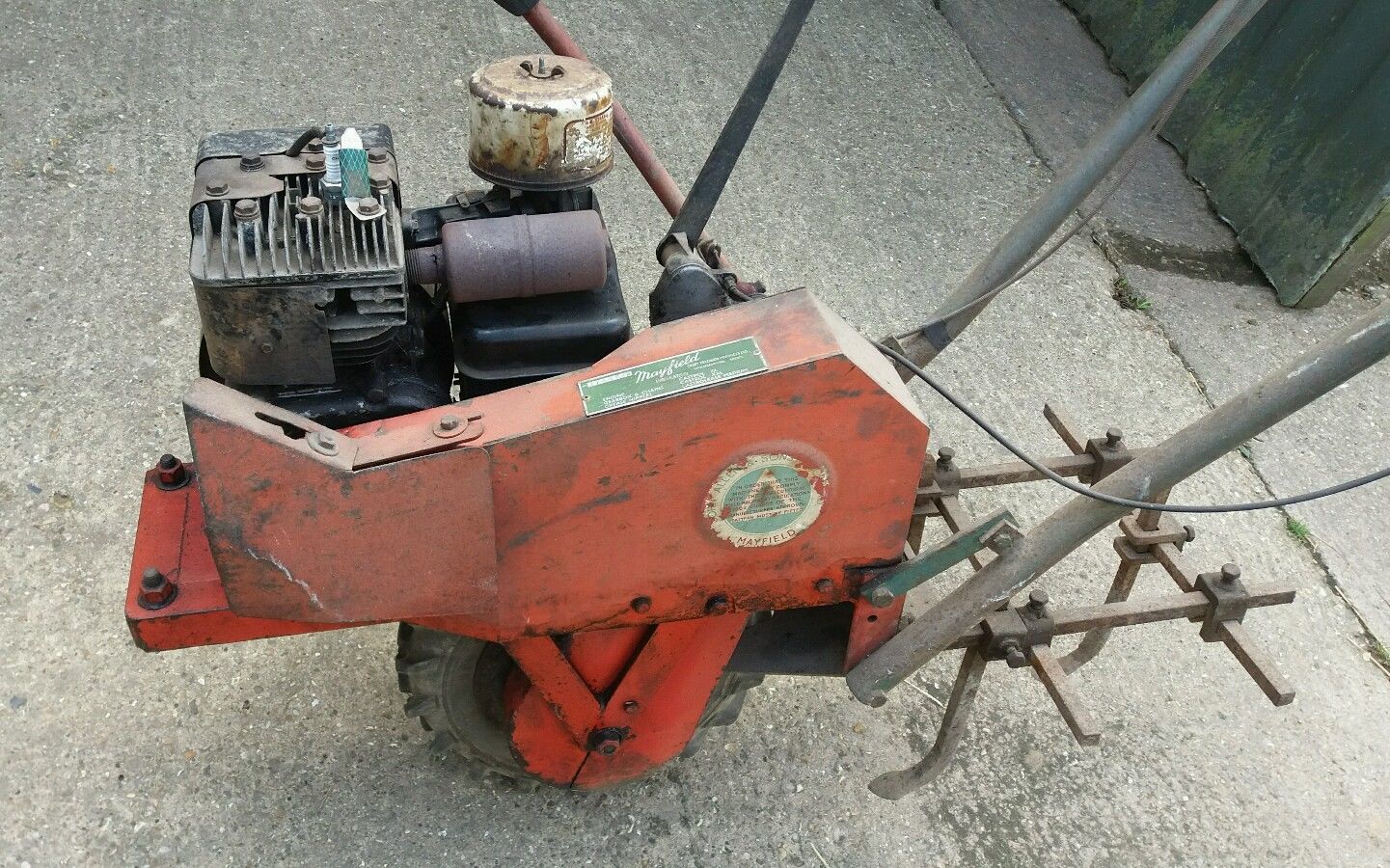 I’ve been helping a guy moving his machinery and we’ve come across this single wheel motor hoe. No makers name or id plate on it, just a mark where a sticker has been. Anyone know what make it is,