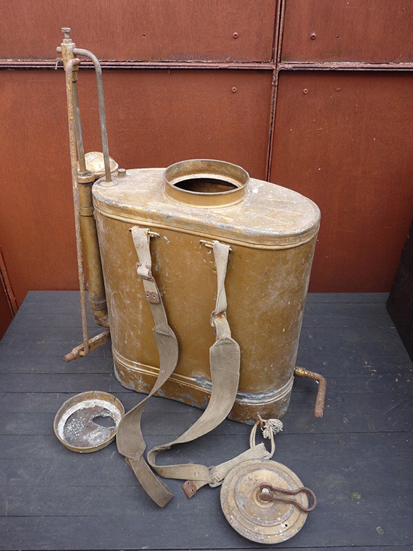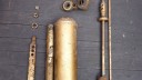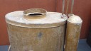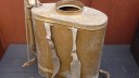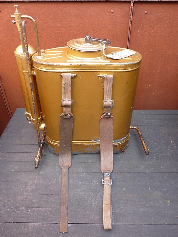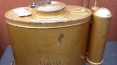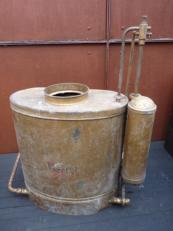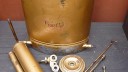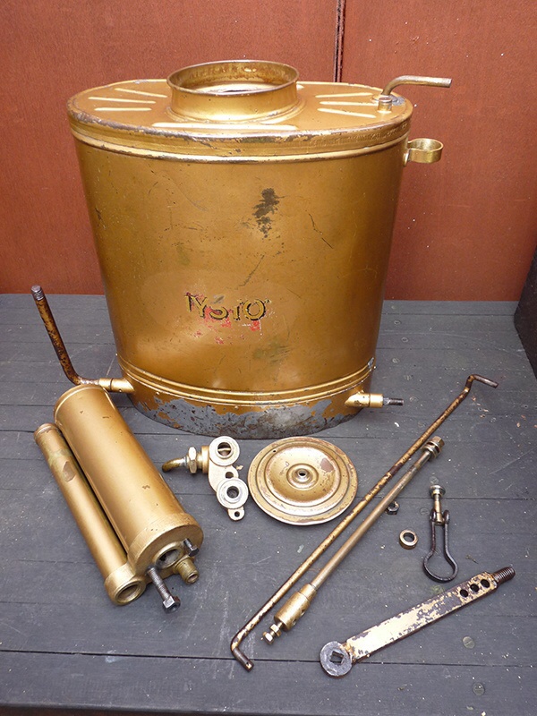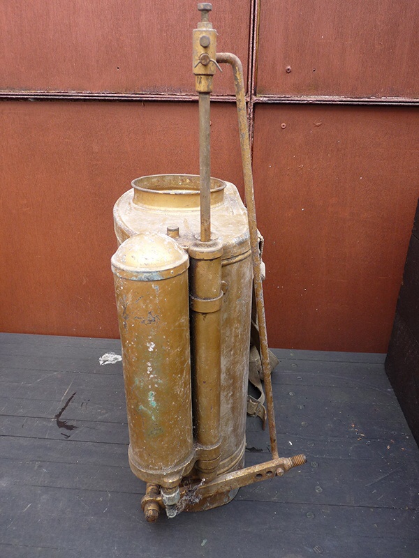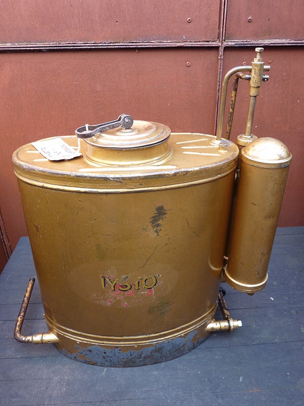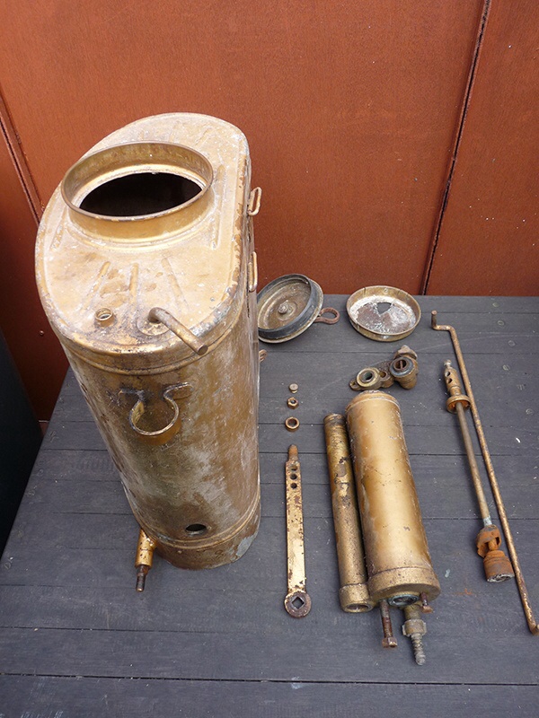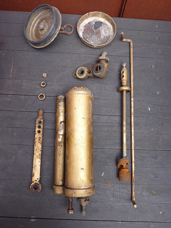 The main tank is brass but the whole unit is painted gold. This is chipped and scratched with some rust on the iron bits, this is all treated now.