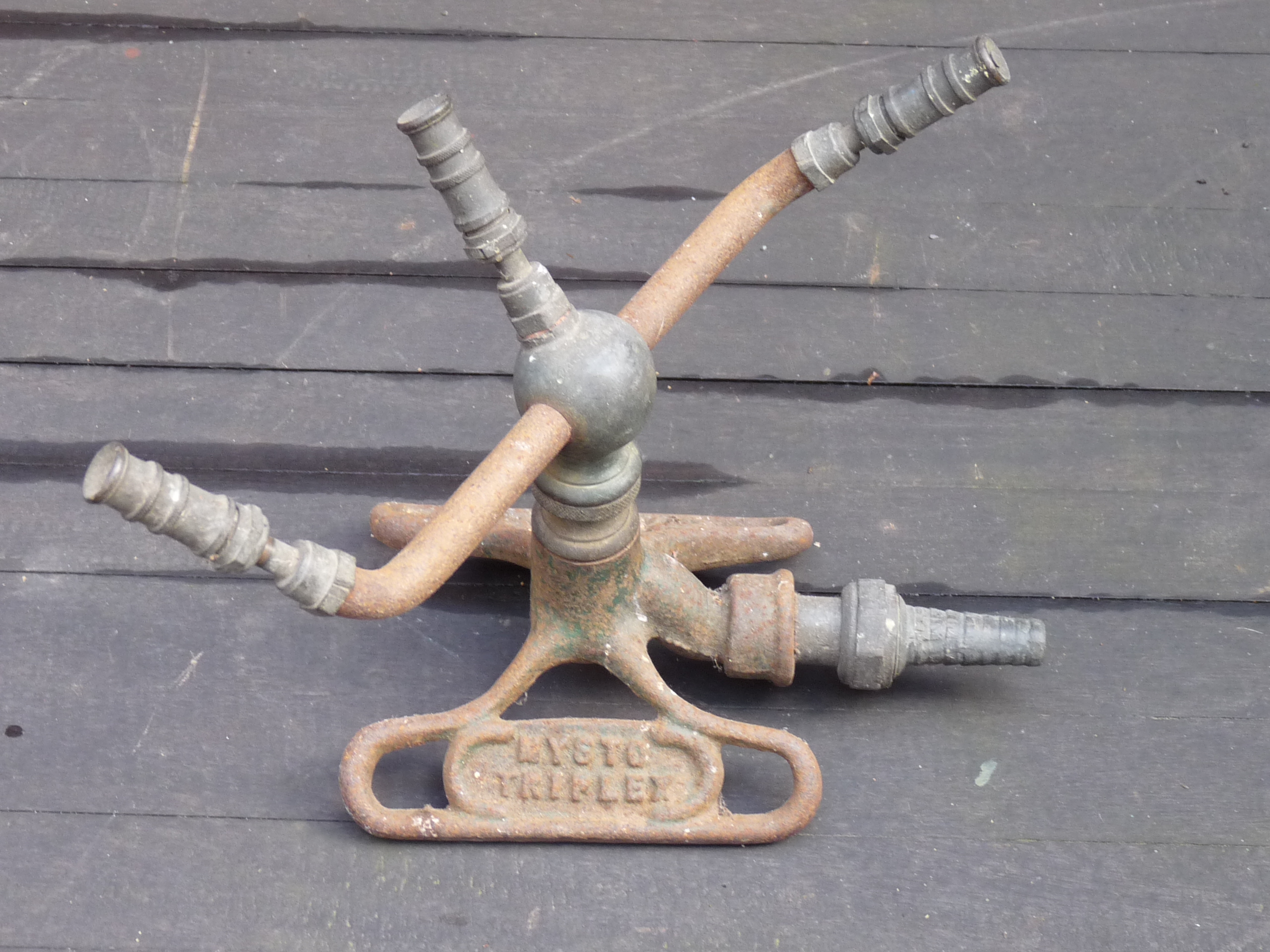 Mysto Triplex Garden Sprinkler Home › Forums › The Machinery Forums › Garden implements › Mysto Triplex Garden Sprinkler This topic has 1 reply, 2 voices, and was last updated 11 years, 9 months ago by sprayerman. Viewing 2 posts - 1 through 2 (of 2 total) Author Posts March 2, 2014 at 5:22 pm #6109 vhgmcbuddyMember Don’t often see sprinklers that I’ve not already got, or don’t need a mortgage for (Pluviette!!). Saw this the other day, but had to pay slightly more than I would normally – but saw the potential. Have new cleaned it up….. …really please with the outcome. Attachments: March 4, 2014 at 8:55 pm #6181 sprayermanParticipant That has come up really well – just shows what can be achieved when we look through the c..p that the artefacts often have when we see them. And it helps when they come to pieces to aid cleaning. Author Posts Viewing 2 posts - 1 through 2 (of 2 total) You must be logged in to reply to this topic. Log In Username: Password: Keep me signed in Log In