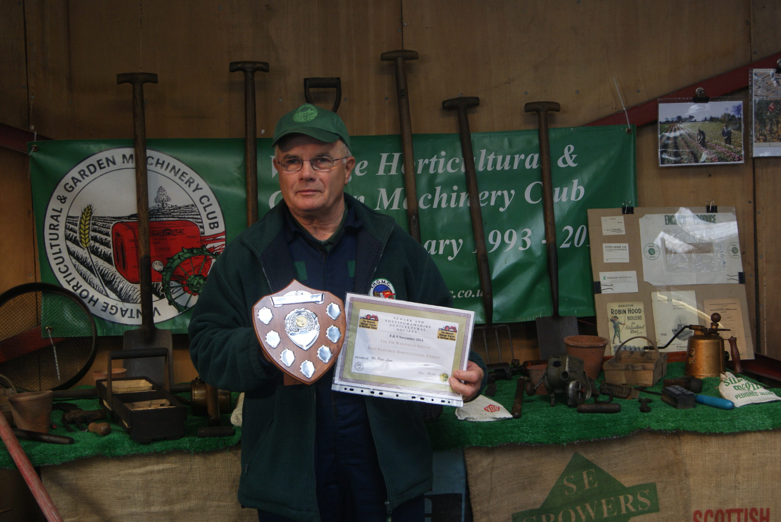 the Jim Wakefield Shield, which is awarded to the best machine in the Featured Horticultural Exhibition, was awarded to Pete Lyon for his very original Colwood Motorhoe.