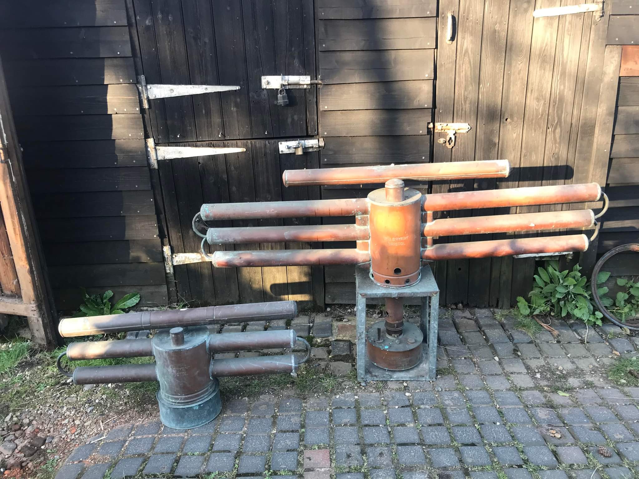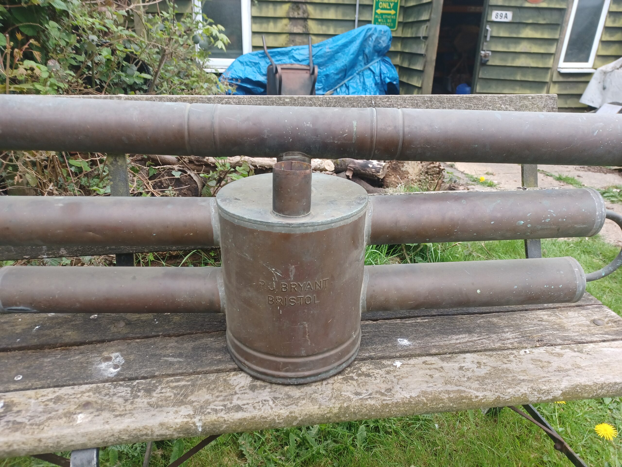with two large copper tubes about 3 feet long across the top.