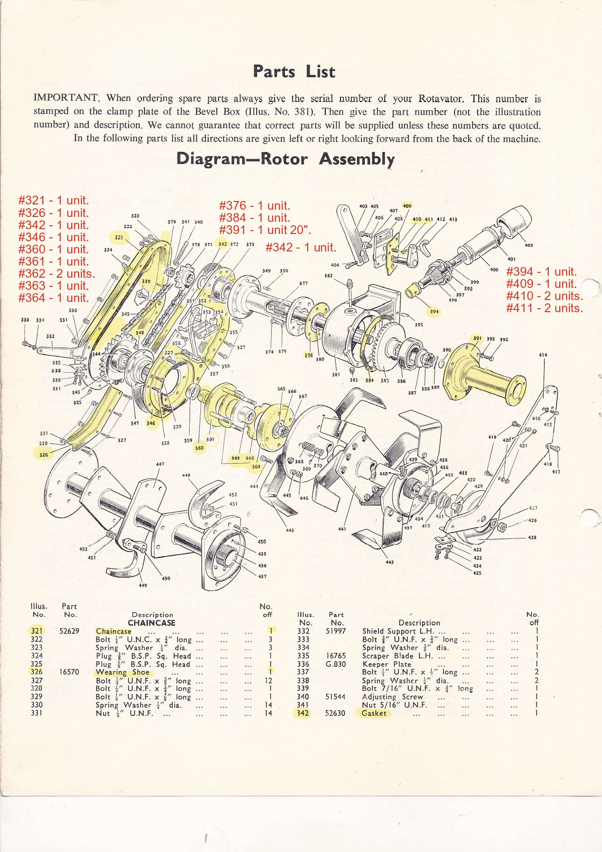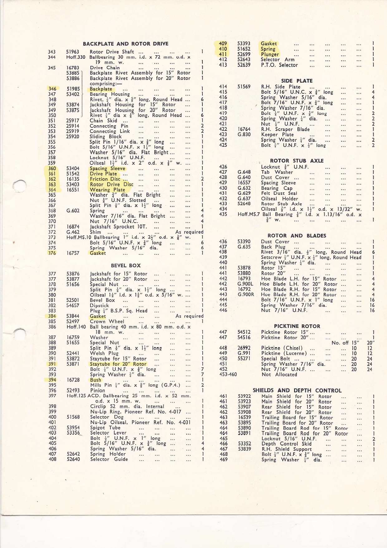 I need diferent parts, especially from the rotavator unit.