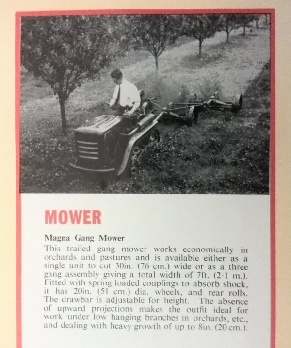 ParticipantFrom a Ransomes MG Sales Brochure I have there were two “approved” trailed finger mowers for the MG.One was the Bamford model A2T controlled from the tractor seat and the other was the Albion no 12 fitted with a operators seat but which could be lifted from the tractor seat for one or two man operation. Both mowers were 3’6″ cut.