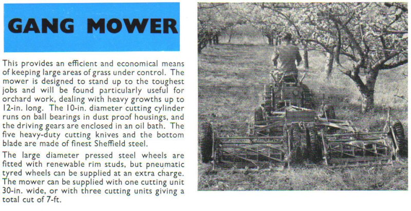 A Ransomes MG certainly could pull a gang mower for you. Have a look at the attached pics taken from various brochures. I see you specify the width, is this because of obstacles you need to get between? If a gang mower would cope with what you have to cut then I’m sure you could pick up just one section. There are some chaps on here with good knowledge of mowers who could offer advise.