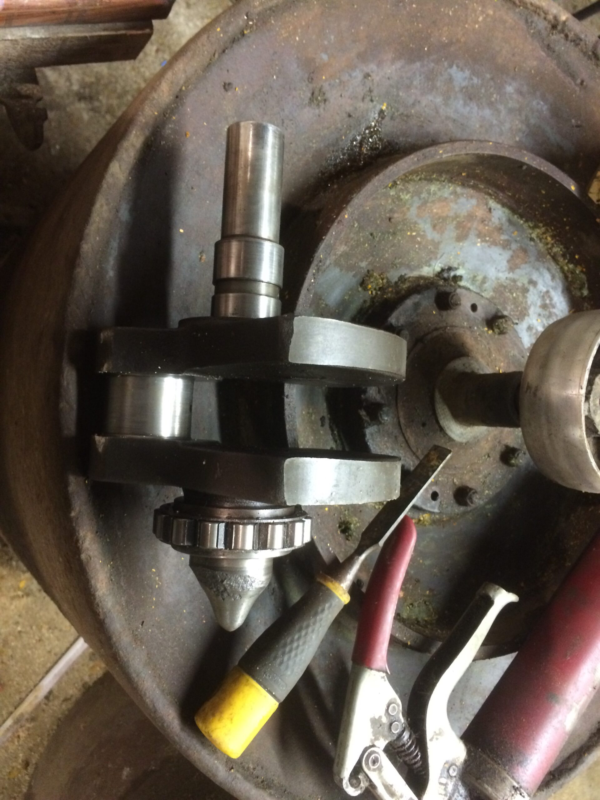 So, got a new crank shaft from Neil , along with new big end shells , roller bearings , seals and gaskets. Had to resize the conrod. Then the web on the crank would not fit into the crankcase. Got it in , and it was hitting off something inside ! Too big for my lathe so a mate took it down on his.