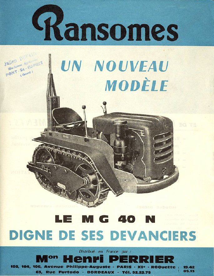 Ransomes Demonstrator was Mr William Smith and the MG led a parade of 12 tracklayers (including a Bristol) before Mr Roger Houdet the French Minister of Agriculture at the Vine Fair.