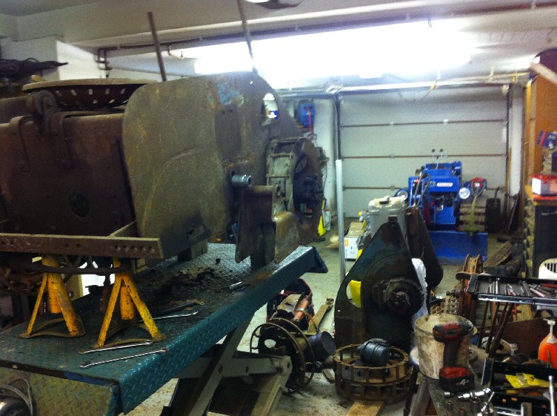 ParticipantRestoration began in earnest today on what is believed to be the oldest Motor Cultivator surviving, dating from 1936 the tractor looks rough but is in remarkable condition, every nut and bolt has come undone without brutal measures. I gave it a good soak with penetrating oil about a week ago and so far it has paid off. The track drive roller wheels are shot so I will cut them off with a plasma cutter and weld in replacement rings from Neil.