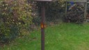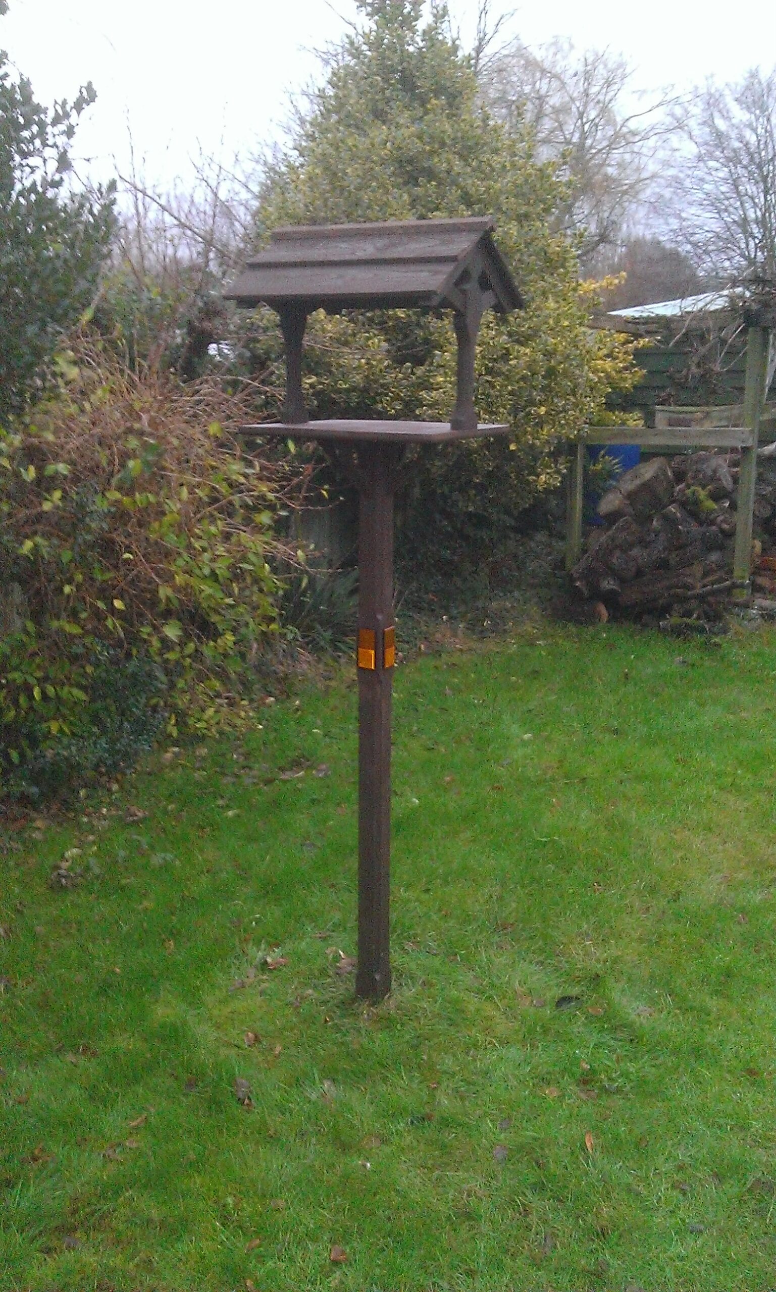 there is now a new bird table. is is a high visibility one to help prevent it being run over again.