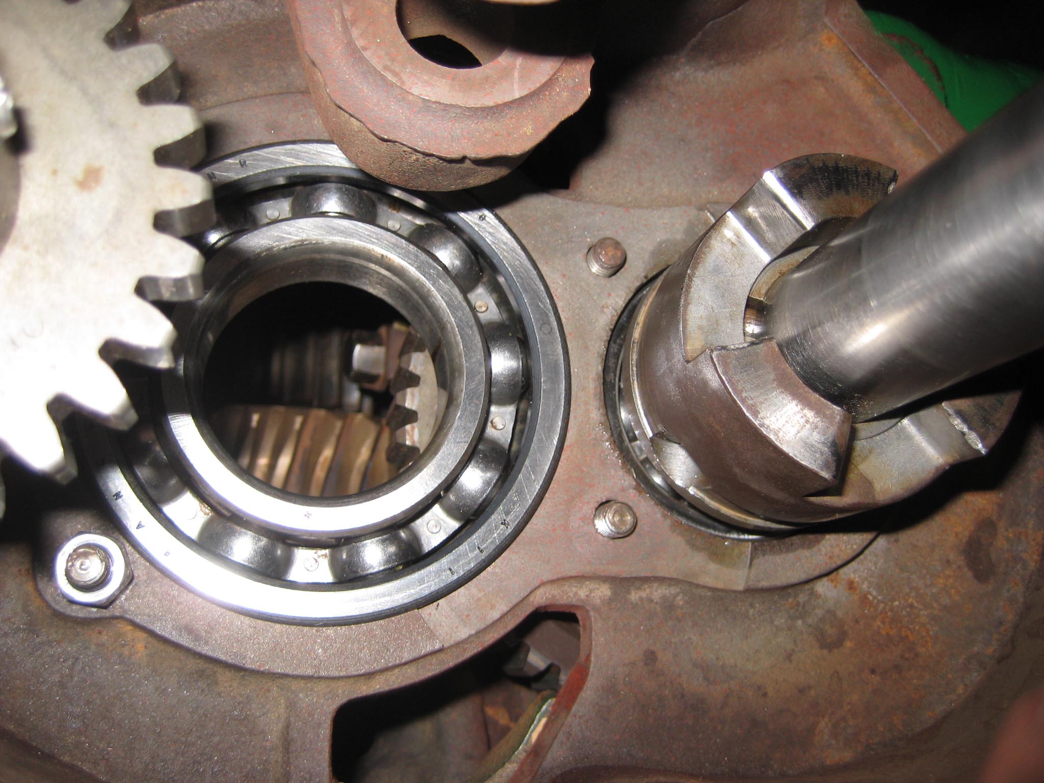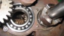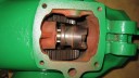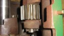 I decided to start with the main gearbox casing. First job was to fit new axle oil seals (Simar 0001). Being of Swiss design, almost everything on the machine is metric, so getting hold of oil seals of the correct size is very straightforward. The axle seals are 65mm outside diameter, 48mm inside diameter and 10mm wide. Next came the M8 studs (Simar 0002) and bowl shaped extension pieces (Simar 0003). The axle components (Simar 0004) were now fitted. I have included a photo of the axle parts fitted together outside of the casing (Simar 0005) as well as inside (Simar 0006 & 7). One item easily missed is the felt washer which fits in a groove machined on the inside of the driven gear sleeves (Simar 0008). I decided not to fit the wheel hubs at this stage, just in case they hindered access when fitting other items and also they would increase the weight of the gearbox making it more difficult to move around.