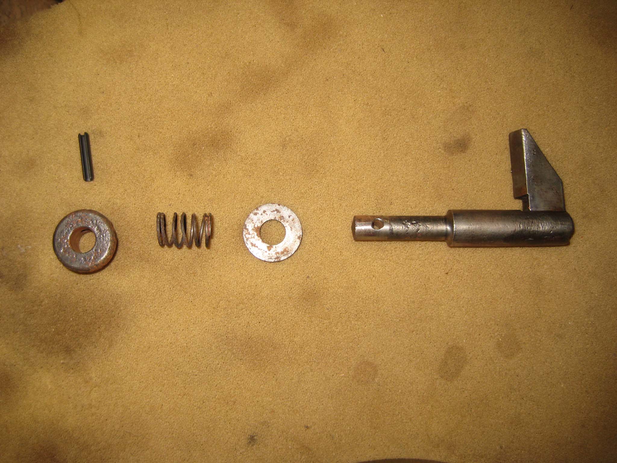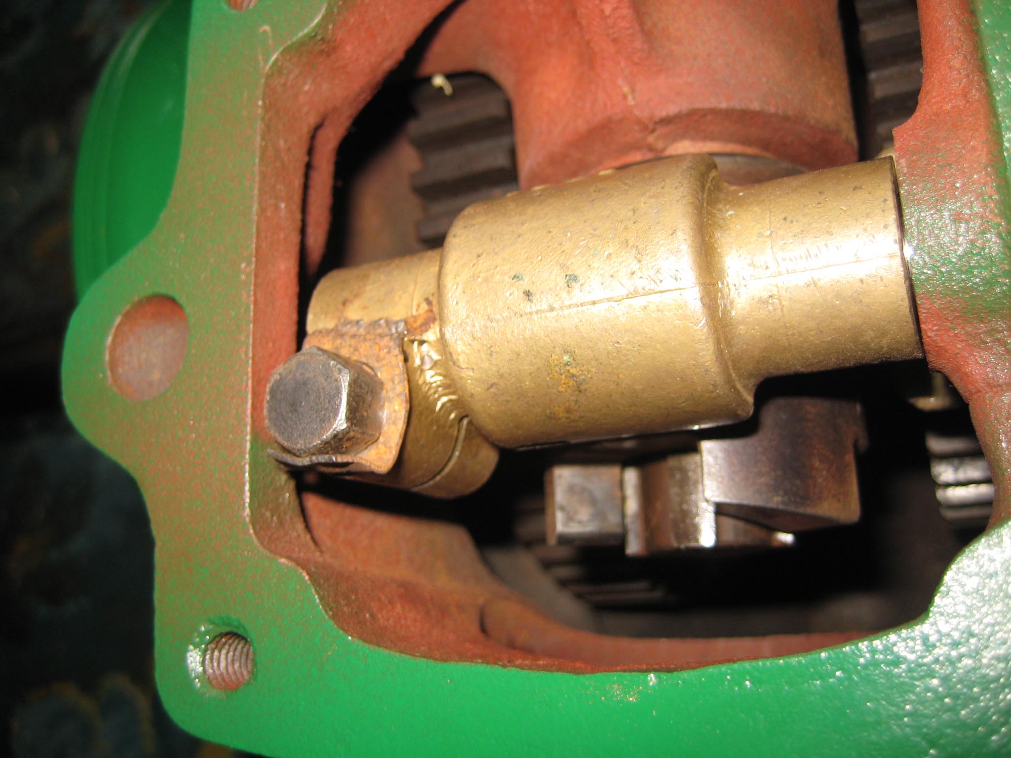 Today got off to a bad start as I realised the locking plunger for the miller clutch couldn’t be fitted from the outside of the main gearbox, as the hole is blocked by the axle bowl extensions (Simar 0031). To make matters worse, the rear end of the worm drive shaft blocks access from inside the gearbox (Simar 0032). So, the axle bowl extensions had to be removed. I am glad I hadn’t also fitted the wheel hubs!! With the locking plunger fitted, the sliding dog for the miller drive was slid onto the end of the worm drive shaft (Simar 0033). The miller clutch parts (Simar 0034) could now be installed, starting with the clutch fork collar and clutch fork (Simar 0035). The clutch fork shaft was slid into position, making sure that outer end with the hole in for a roll pin was correctly orientated (Simar 0036), shown at the very top of this picture. The clutch fork is clamped onto the shaft using a bolt and locking tab (Simar 0037).