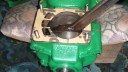 After refitting the piston, the cylinder barrel, cylinder head studs and head gasket were installed (Simar 0071). Note the orientation of the piston. The cylinder head needs to be aligned so the spark plug hole is towards the front (Simar 0072).