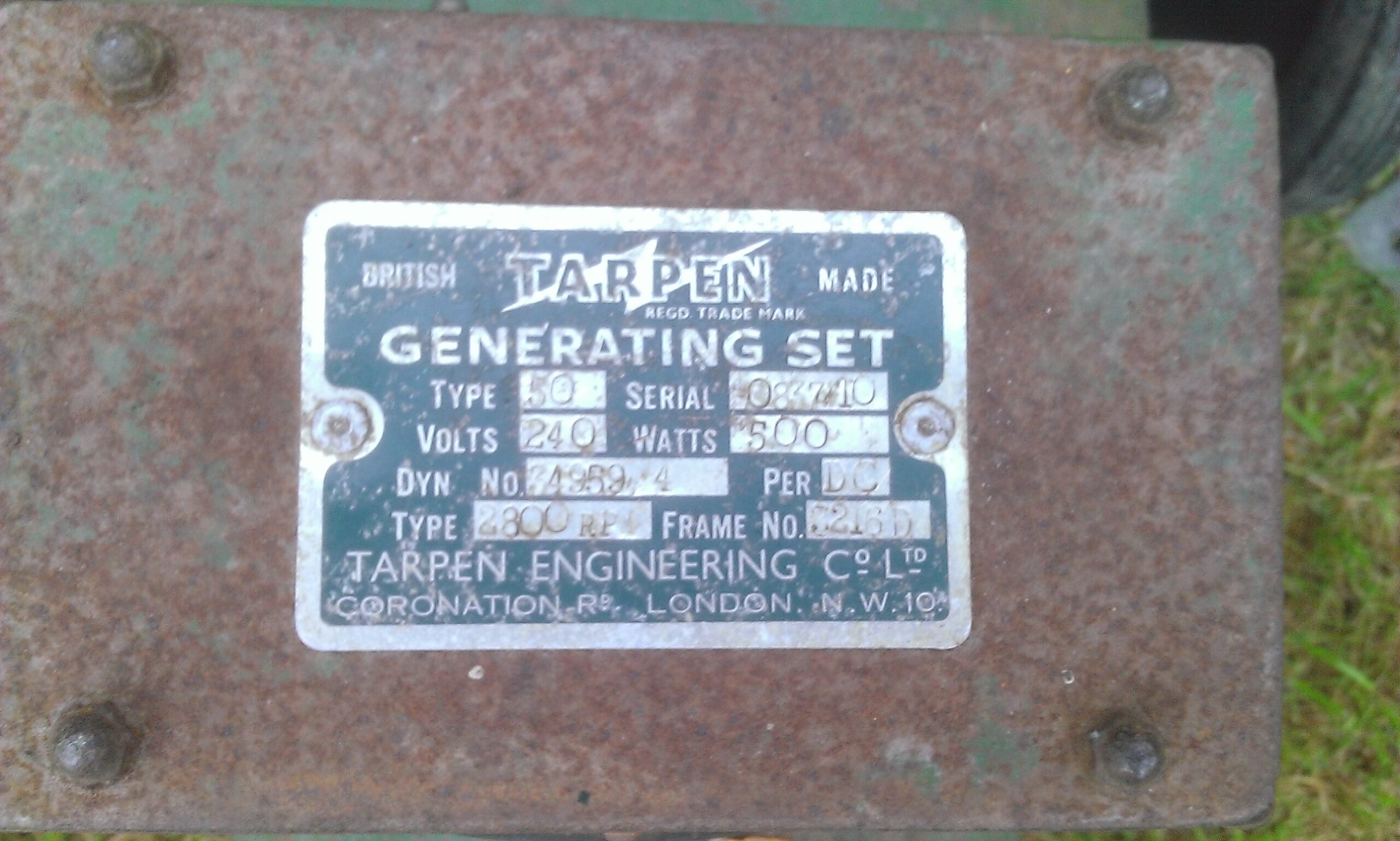 i am currently restoring a tarpen type 50 240v generator and was wondering dose anyone know what make engine tarpen used as i cant find a manufactures name on it anywhere. any help much appreciated.