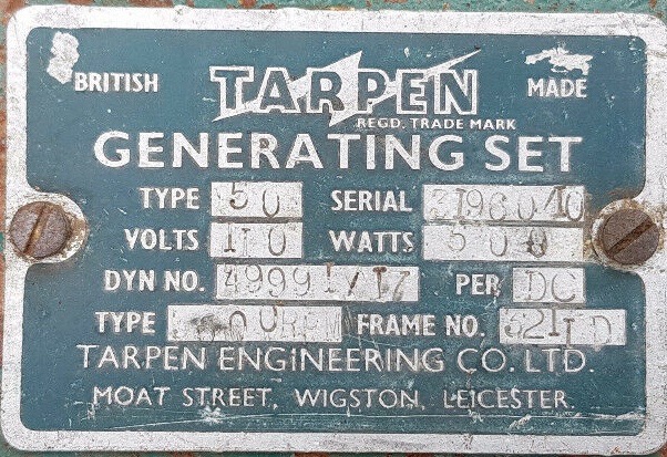 I Have a Tarpen / Villiers Type 50 Gen set which I have restored to working order. Is there any way of dating it Iv’e attached a photo of the id plate and the engine. any help would be great regards Paul