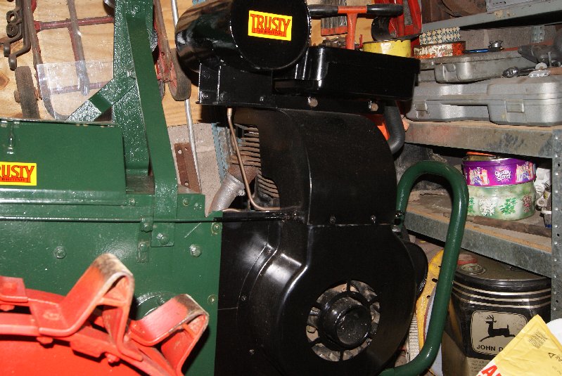 Anyway, the story starts with an entry to Tractor Newark about three years ago. I had just bought the Trusty Sawbench and was in the middle of restoring it in time for the show when an idea just popped into my head; what if I displayed it with a Trusty and my Trusty trailer? I then hit on the idea of driving the sawbench off the belt pulley on the Trusty and so I set to work to finish the sawbench, smarten up the trailer and give the Norton Trusty a facelift.