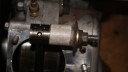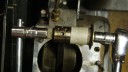 The bush was then turned down to 1.032″ to give an interference fit in the little end hole in the con rod. It was then coaxed in with a stepped washer and a long bolt, then finally four oil holes were drilled in the top. The piston was fitted and the barrel dropped over, using a block of wood to take the weight until the piston rings were well inside the bore. It was then a simple matter of bolting everything up tight again. I will have to re-set the tappet clearances now the spacer gasket is in place, but the piston is now flush with the top of the bore when it’s on TDC so it looks like mission accomplished.