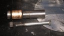 Whilst working on this part of the engine I thought it prudent to change the little end bush as there was a slight amount of movement in it. Now, this is where my latest problems arose as the piston appears to be non-standard. The outer dimension of the bush (ie the diameter of the hole in the end of the con rod) is 1.032″, the length of it is 1.125″- so far so good. The gudgeon pin has a diameter of .866″ (which is 21.99mm ), and the standard Norton bush has an internal hole diameter of .875″. That means that I can’t buy a bush off the shelf.