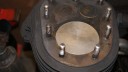 trusty220KeymasterIt’s been a week or so since I last looked at this and I decided to move it on a pace today, seeing as the shows are getting closer and I need it finished. The course of action decided upon was to make a spacer gasket to lift the barrel 40 thou and bringing the top of the piston level with the top of the barrel. The only problem was that it isn’t easy making a circular hole 3.55″ in diameter in 40 thou Aluminium sheet.