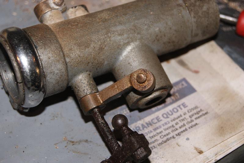 The next item on the list was the slow-running adjuster screw which somebody had twisted off some time in the dim past. It is situated on a long arm and sits against the vertical barrel that houses the main jet. When in use it is a fine adjustment to alter the angle of the butterfly in the venturi and you can’t set an even tick-over without it.