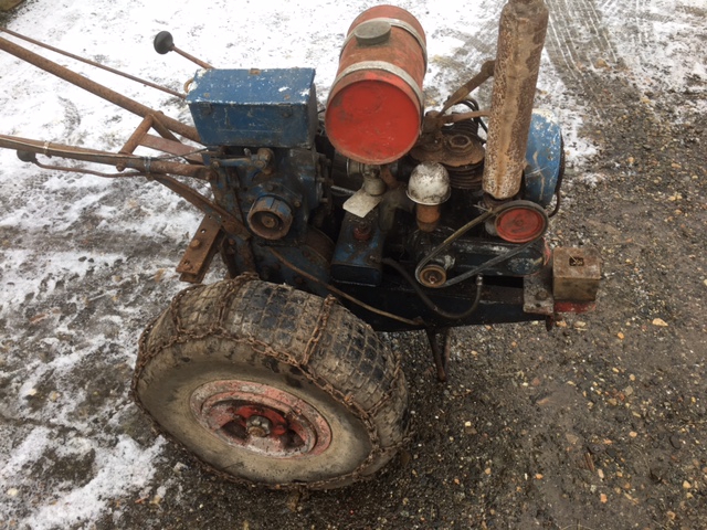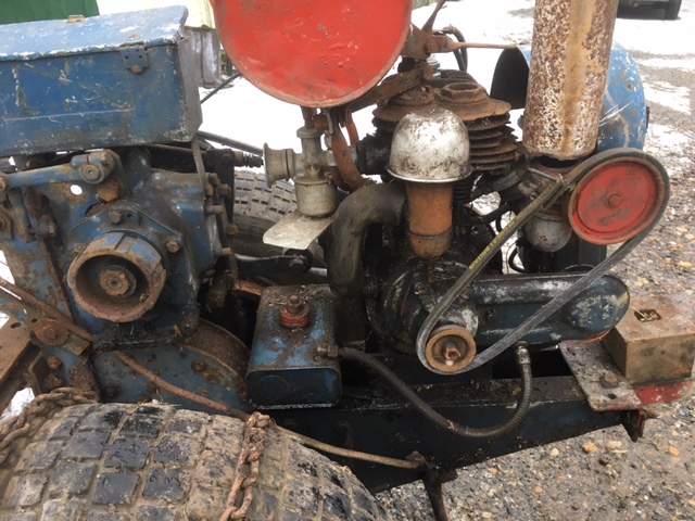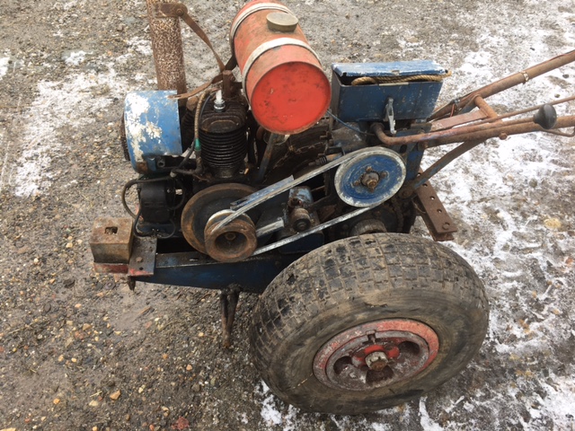 ParticipantLooks a early engine, as it has the separate valve caps, twenties to early thirties. A bit odd seems to have a air filter snorkel and pipework, but carb not for having one, I had a similar thing with I think Villiers engine and Albion gearbox with reverse.It had a small plow and cultivator, as completely worn out apart from the gearbox that was the same as I think Douglas motorcycle so only motorcycle with reverse and the rest ended up as a really handy thing to mount a pressure washer on.