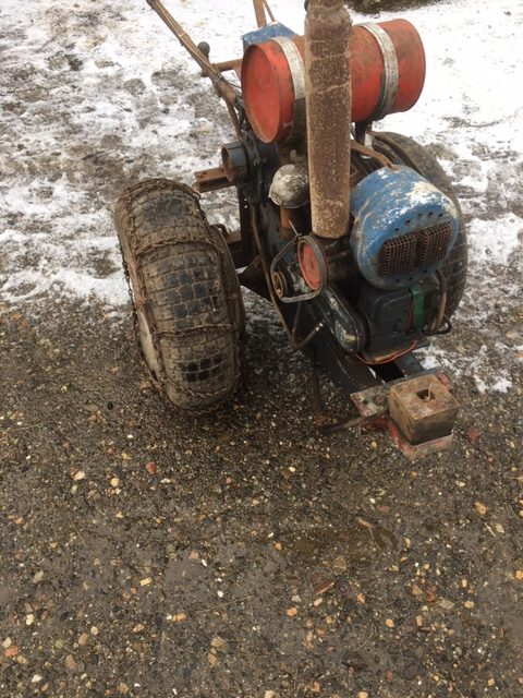 hdtrustParticipantYes a bitsa in America they call them doodle-bugs. The engine is a 350 cc JAP which possibly came off a late 20’s Raleigh motorcycle, as they were belt driven. JAP did produce a 2 stroke with chain drive to the magneto called an Aza but it is not this engine, the gearbox does look Albion of sorts. Lawn mowers were made by back street engineers so why not 2 wheel tractors