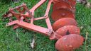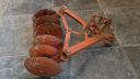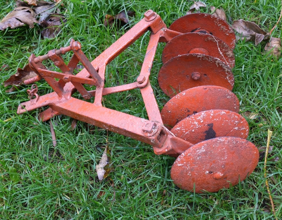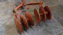 Have dug a little deeper into these discs….. They are actually Planet Jr discs on a home made frame…… albeit very well designed and made. The discs are actually blue under the orange…. With no signs of any other colour previously. I have removed each set of 3 from the frame and cut through the brazing to relaease the original PJ arm from the home made bit, and then dismantled the discs ready for blasting and priming. I plan to paint them in the colours of the Farmers Boy tractor…..