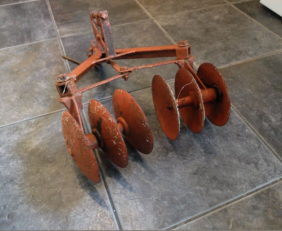 I picked these up from a chap in Nottingham yesterday, mainly for the Planet Jr disc set on it. However, I wondered if anyone could help with identifying the maker of the frame or if they have ever seen one before. It could also be homemade, but its designed and functions very well, leading me to think it could’ve been produced by a manufacturer…… My intention is to restore the discs to fit the tool frame of the Farmer’s Boy tractor.
