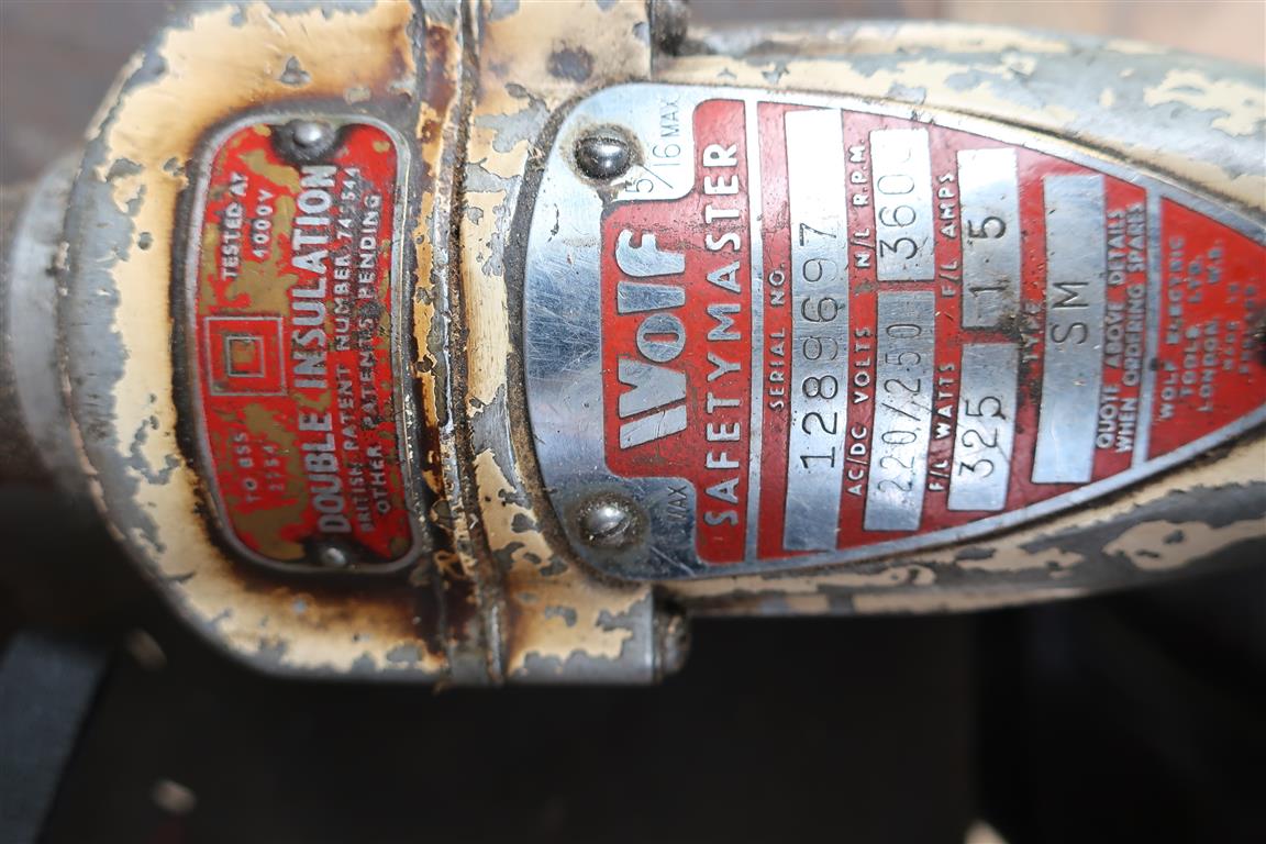 My other vintage drill is a Wolf Safetymaster which, I believe was the first Double Insulated DIY drill sold in the UK. I traded in a Wolf Cub drill in the early 50s to buy the Safetymaster complete with stand, reduction gearbox and vice. It still gets occasional use. -