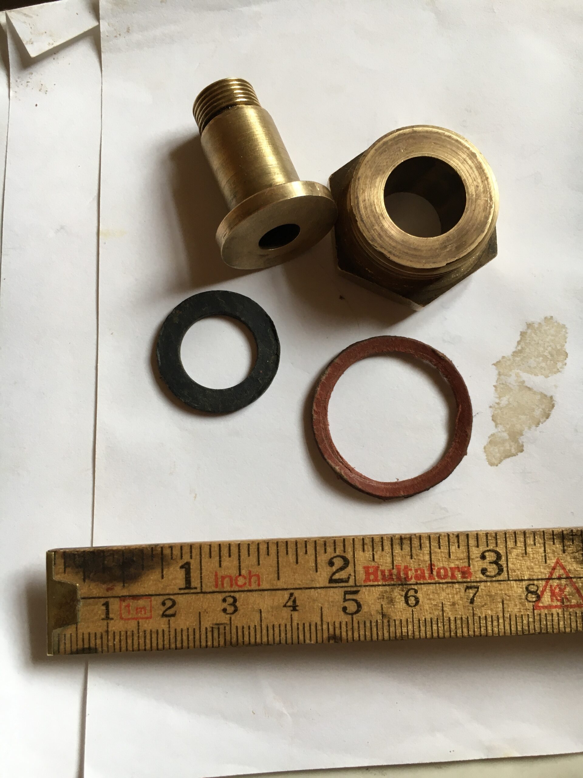 I carefully unscrewed the brass collar and managed to remove the two washers. The black one seems more like plastic than rubber and the other I’d guess to be a red fibre washer (see photo). Without wishing to trouble you further, do you know, therefore, the best way for me to make my own washers and get the source material?September 15, 2021 at 10:35 pm #37877