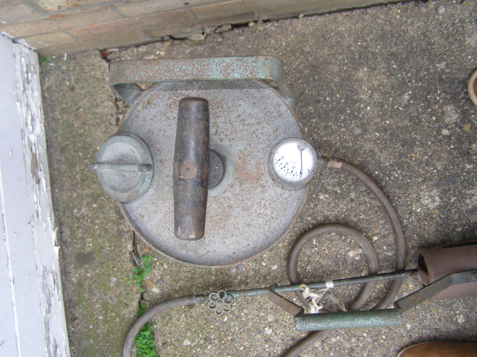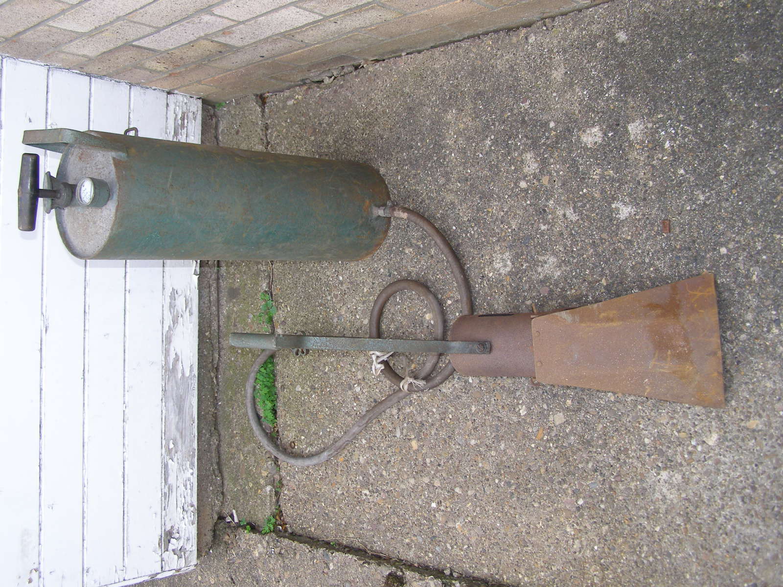Vintage Flame Gun Home › Forums › The Machinery Forums › Garden implements › Vintage Flame Gun This topic has 2 replies, 2 voices, and was last updated 11 years, 8 months ago by will-haggle. Viewing 3 posts - 1 through 3 (of 3 total) Author Posts April 6, 2014 at 4:22 pm #7150 vhgmcbuddyMember Does anyone know the maker of this Flame Gun? Anyone interested contact me Attachments: April 7, 2014 at 7:44 am #7164 will-haggleParticipant I’m fairly sure we can eliminate Four Oaks, all theirs had domed tops… Attachments: April 7, 2014 at 7:50 am #7166 will-haggleParticipant There’s a topic on the old forum. I’ll share one of the pictures, yours looks like a Sheen X600…. Attachments: Author Posts Viewing 3 posts - 1 through 3 (of 3 total) You must be logged in to reply to this topic. Log In Username: Password: Keep me signed in Log In