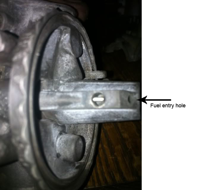 I think you may have misunderstood what I was trying to explain, so have found another photo from the article and indicated what I believe is the fuel entry point. There is no sign of this on your photo number P1040986 in your first post, so it is probably bunged up with crud.
