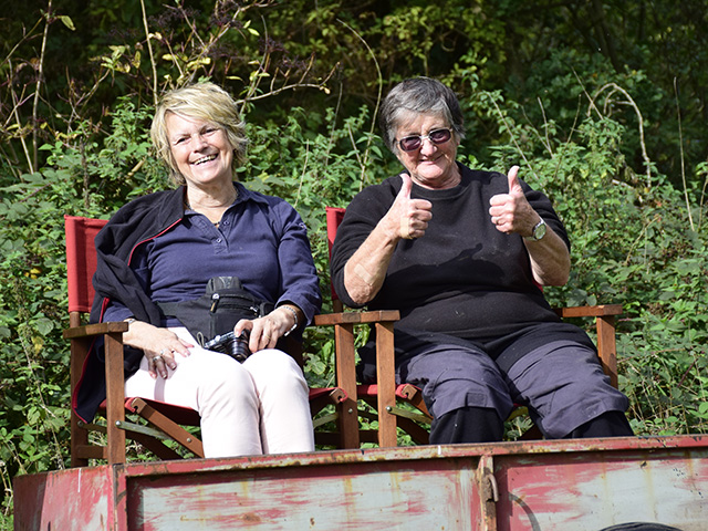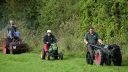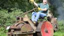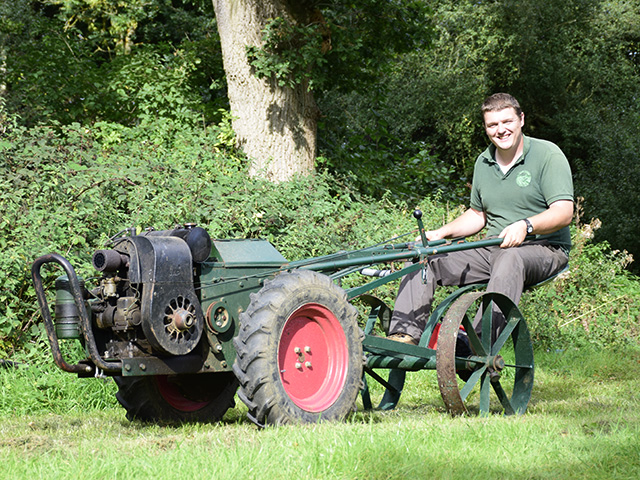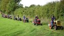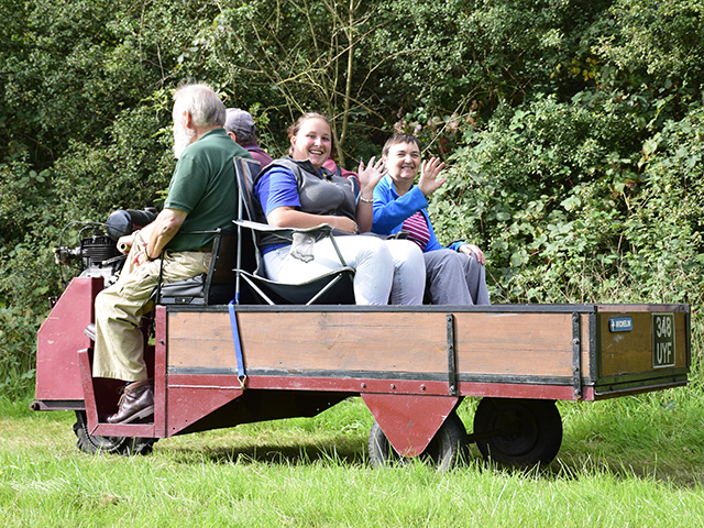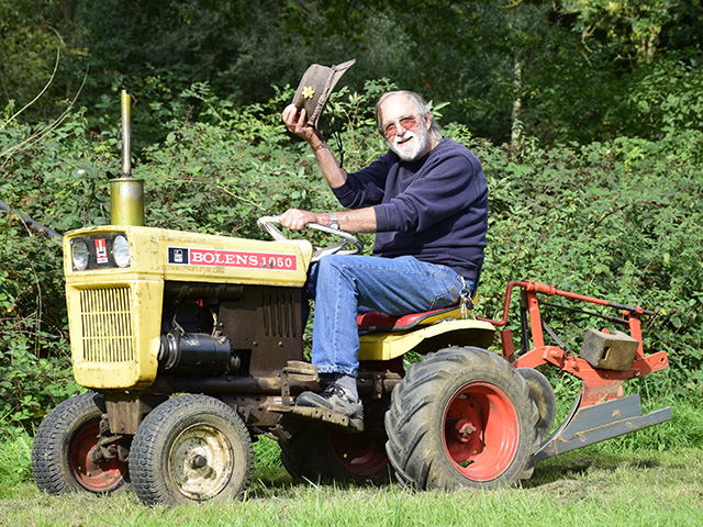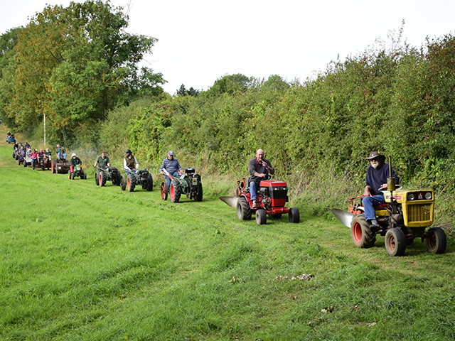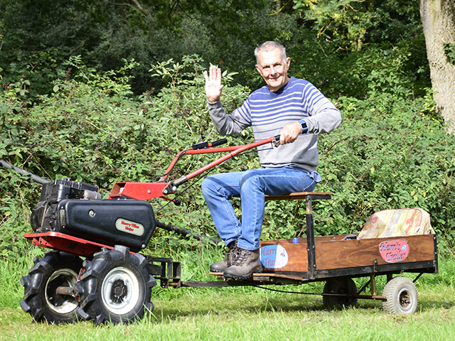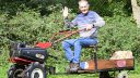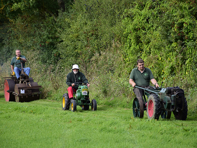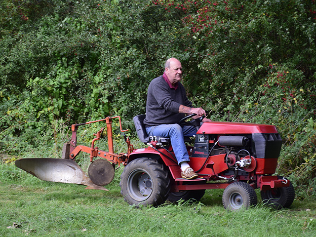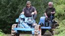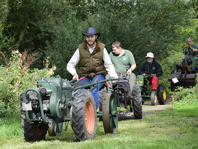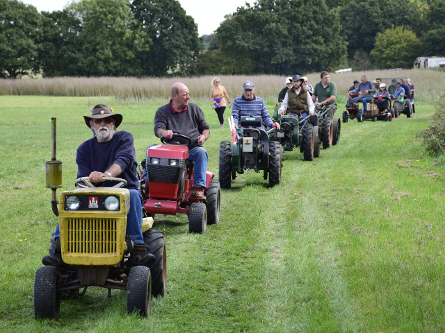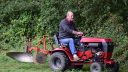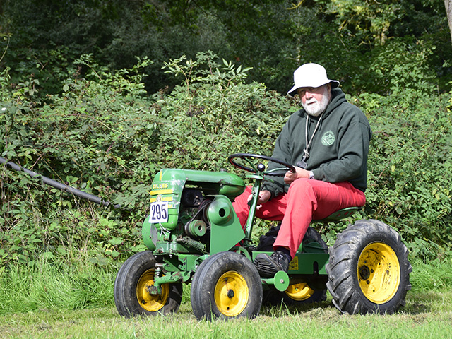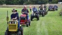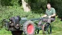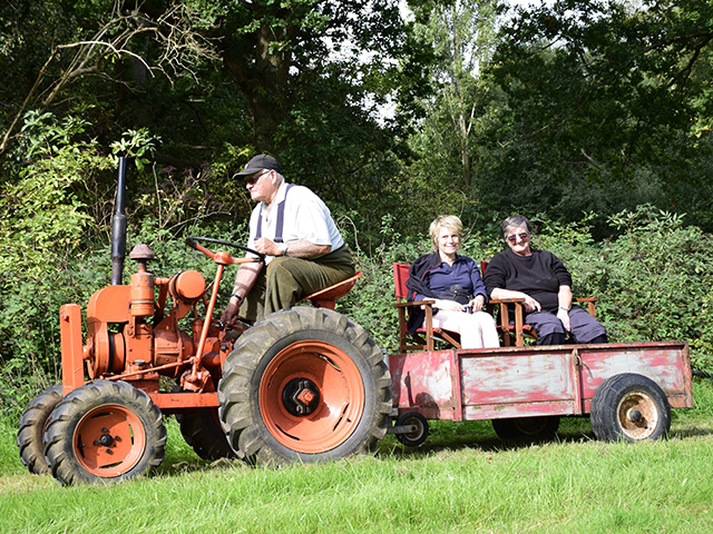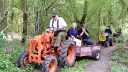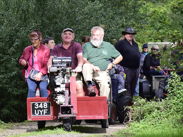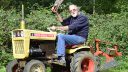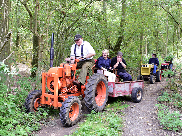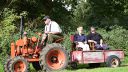 Could someone put me out of my misery and tell the make of the orange coloured tractor, which is towing a trailer carrying two people on garden seats in it.