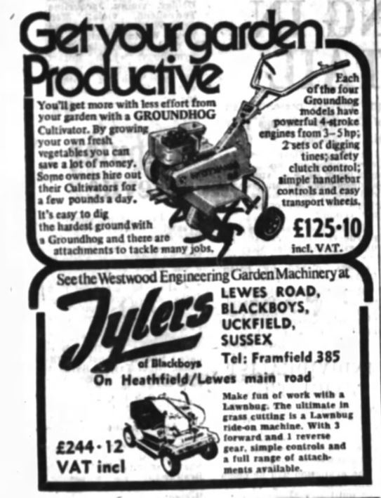 The Westwood Groundhog machines were introduced in the 1970s. There’s no mention of the groundhogs in 1973, but in autumn 1974 adverts were promoting the ‘NEW’ Westwood Groundhogs. When launched the 3 hp model was advertised at £95.