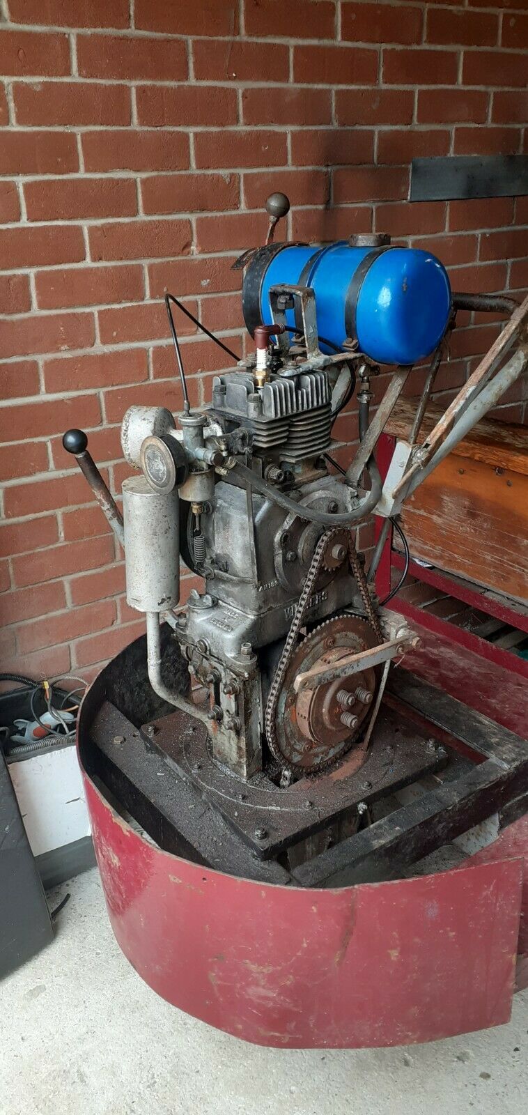 I have attached some close ups of the engine. The only ID mark I can make out on the engine is AM189 and Villiers made in England. The engine is approx 15 inches high from sump to top of the head. The head size is 5 inches x 6 inches square with a barrel depth of approx 4.5 inches – what engine is this and what is its ccs ( Mk25 ??) I have enclosed some better pictures. It has an Albion 3 speed gearbox slung underneath. Help and advice with road registering would be helpful – although I have already talked to the DVLA and it seems fairly straight forward (They are sending me documentation). It would be nice to get an age related registration otherwise it might have to be a Q plate if I cant pin down the year of manufacture? Thanks steve