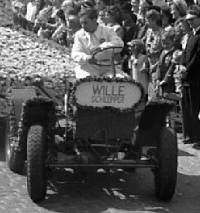 On the front of the tractor is a rose-surrounded sign saying ‘Willie Schlepper’, the schlepper translating as Tug. I cannot find a manufacturer of machines by the name of Willie, but perhaps it was the tugs nickname? Any ideas?