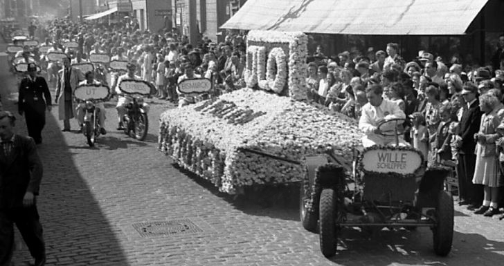 I have found a photo and also traced it to some information on a German museum website. The photo show an ILO parade in 1950 at a Rosenfest (Rose Festival) where machines that used ILO engines were driven through the parade. The names of the manufacturers are on each machine and adorned with roses. The interesting bit is that the ILO float is being pulled by a four wheeled, possibly four wheel driven tractor with round fenders, I’m guessing this is powered by an ILO engine?