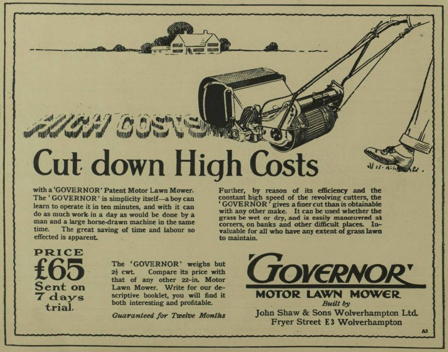There’s some 1926 adverts in the gallery with a 22″ cut water cooled mower.