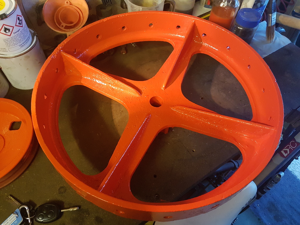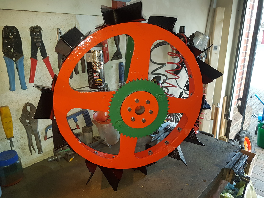 darmic1ParticipantHad the tyres and tubes fitted yesterday, also reassembled the big cast 20″ wheels. The cleats are set different on each wheel. One set with an in/out pattern which runs on the unploughed ground…. The other with cleats set pointing out, this wheel runs in the furrow and doesn’t tear up the furrow edge set this way!