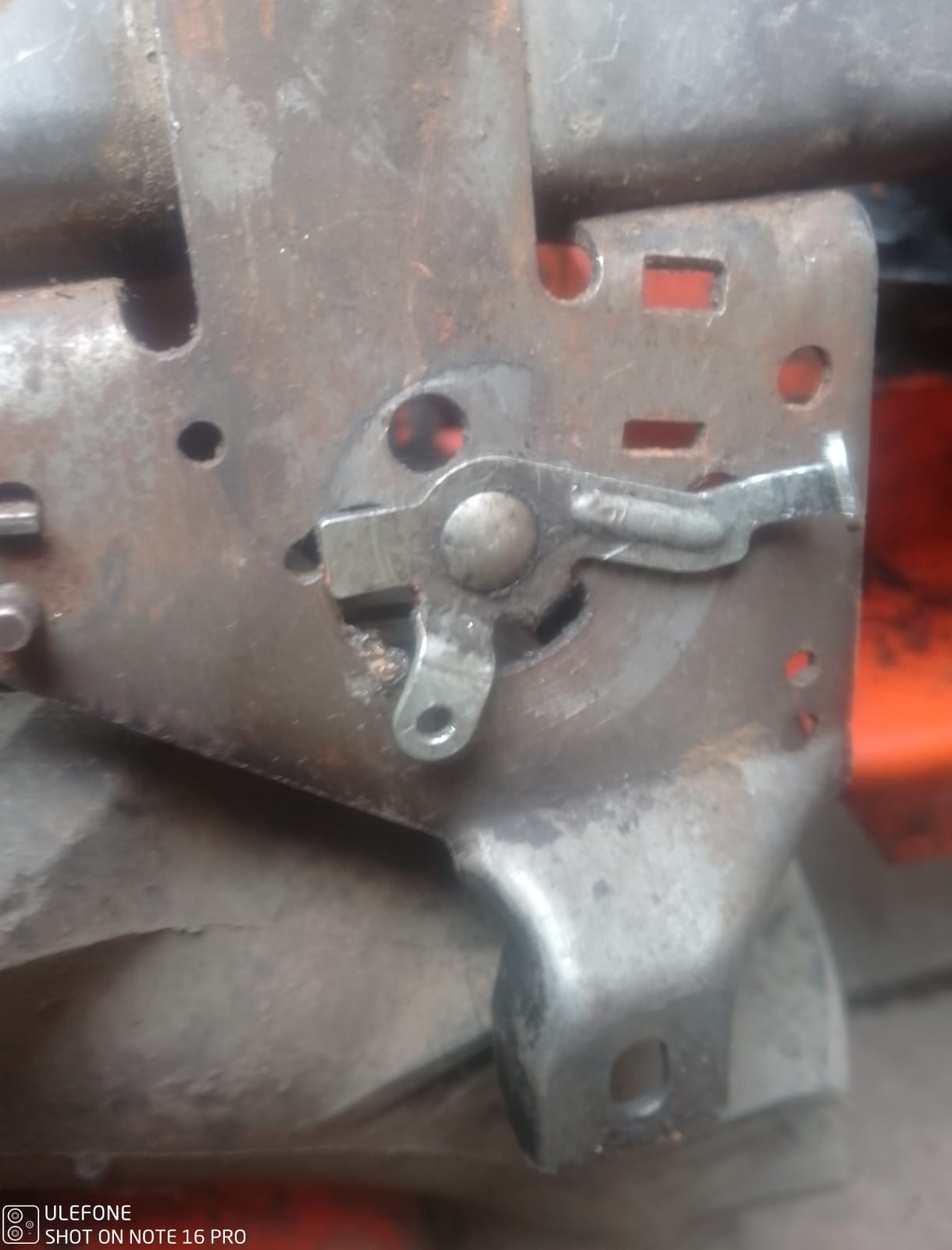 here are 2 photos, one is the throttle mechanism that is controlled by the hand lever, as can be seen there are some holes in where some sort of spring connects this to the governor or/and the carb linkage, which you can see in the photo of the governor lever.