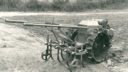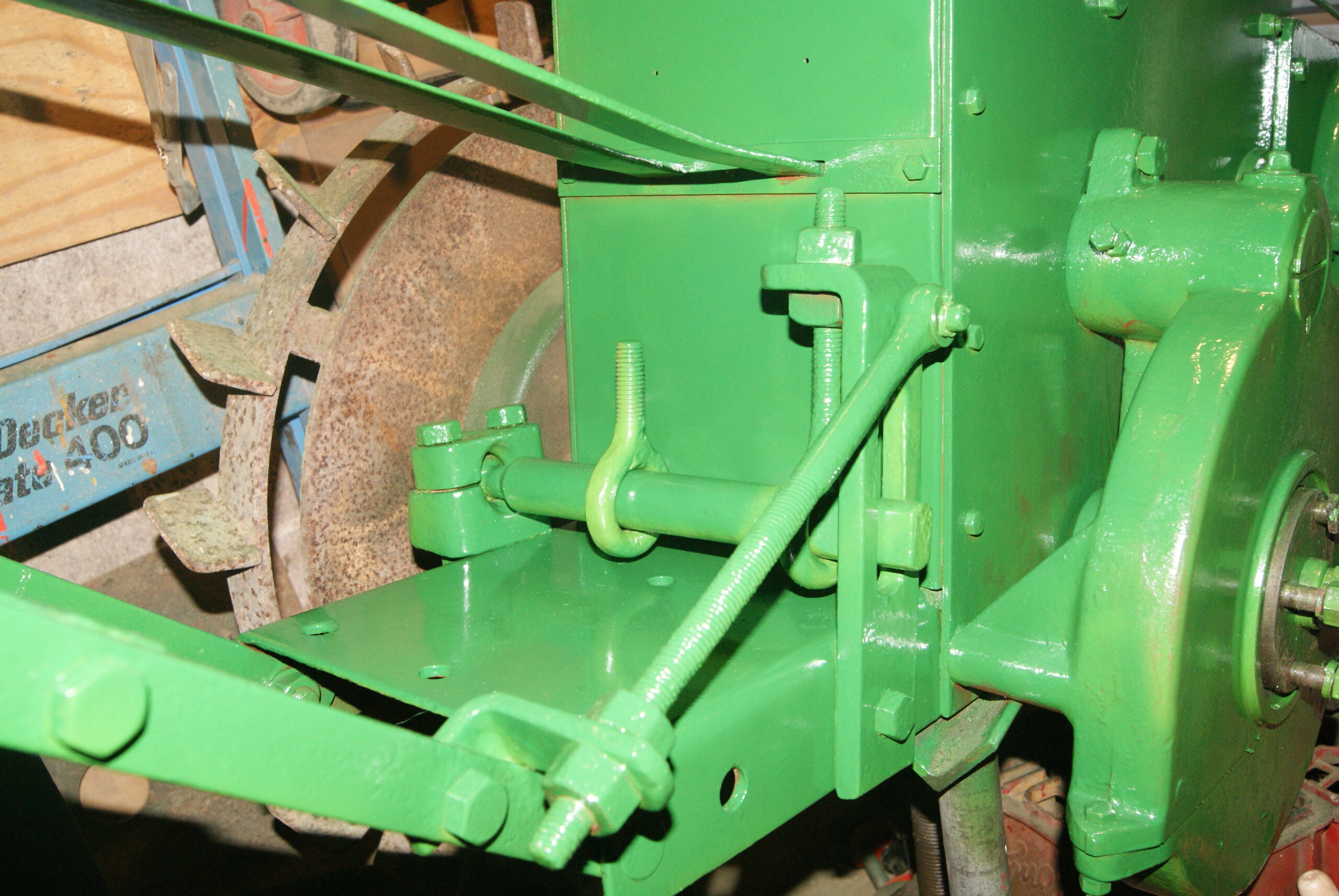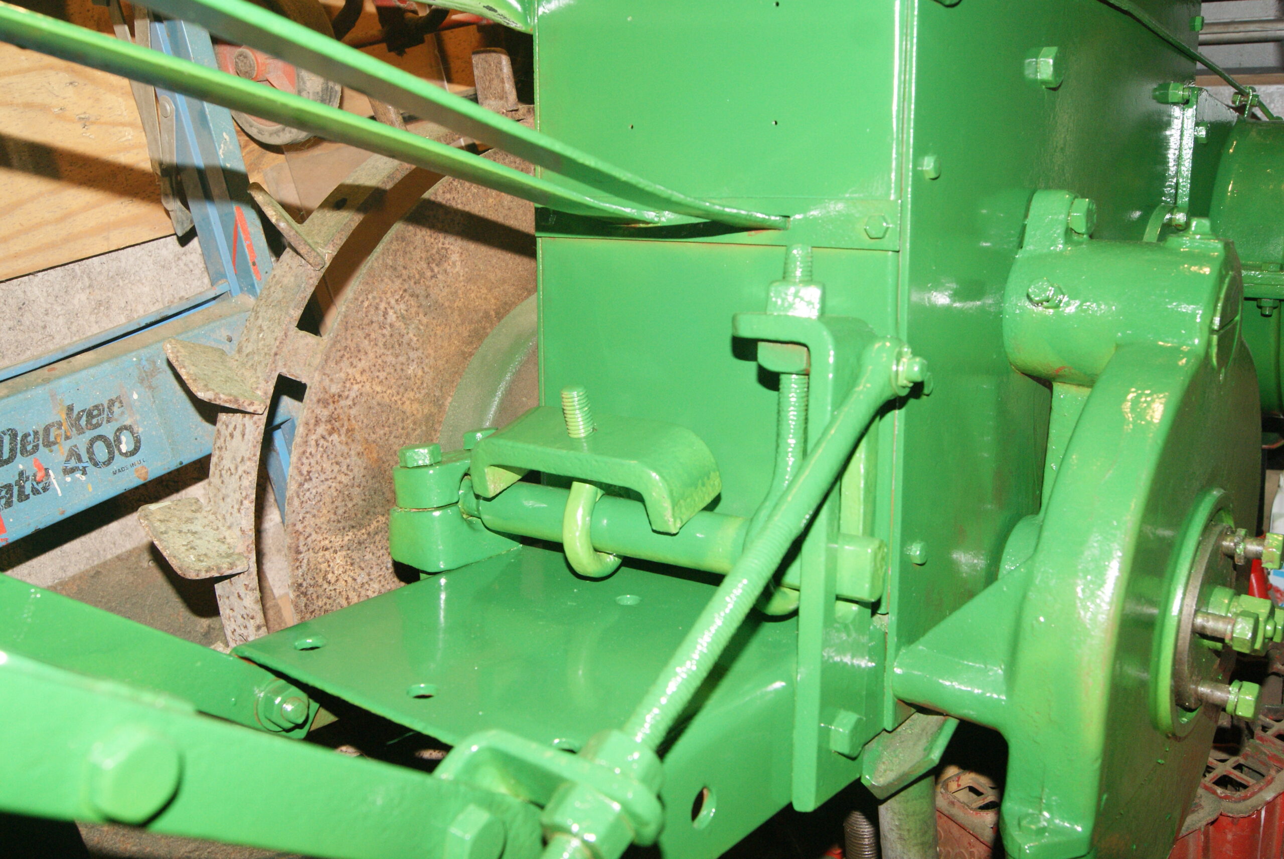 trusty220KeymasterAs promised, here are some pictures of the early type hitch which was used before the swinging drawbar was introduced. The plough was attached by placing it’s large, horizontal ring on top of the crossbar with the ringbolt through the middle of the ring. The large clamping plate was fitted over it and the eyebolt and held down with a nut. The plough could be adjusted sideways by slackening the nut and sliding the plough and eyebolt sideways then tightening when the correct setting was achieved.