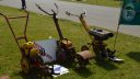 It looks like a Shay Rotogardener, made by the people who invented the rotary mower called the Rotoscythe. Picture shows Phil Murrell’s collection of Rotogardeners displayed at Ardingly in 2015 with the similar model in the middle. Alternative suggestion would be a Versatiller by Farmfitters.