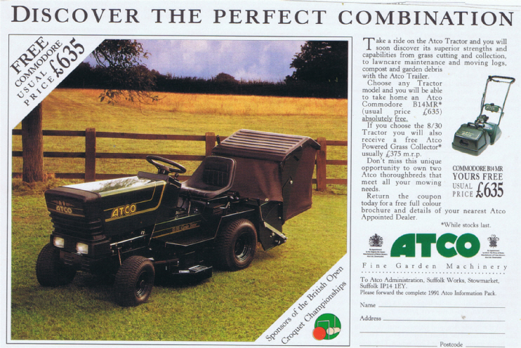 Atco 12 36 Ride on mower Vintage Advert 1991